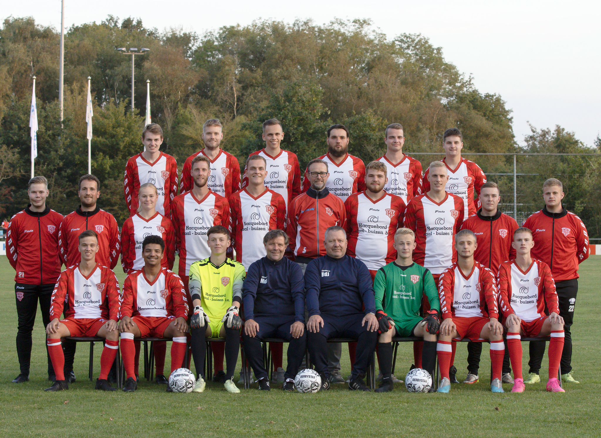 Onze A selectie heeft nieuwe tenues en presentatiepakken ontvangen van de al jarenlange hoofdsponsor Hacquebord Staal & Buizen B.V. en Friesland Non-Ferro Metaal BV. Een lekker fris en nieuw ontwerp waar we weer prima mee voor de dag kunnen komen.